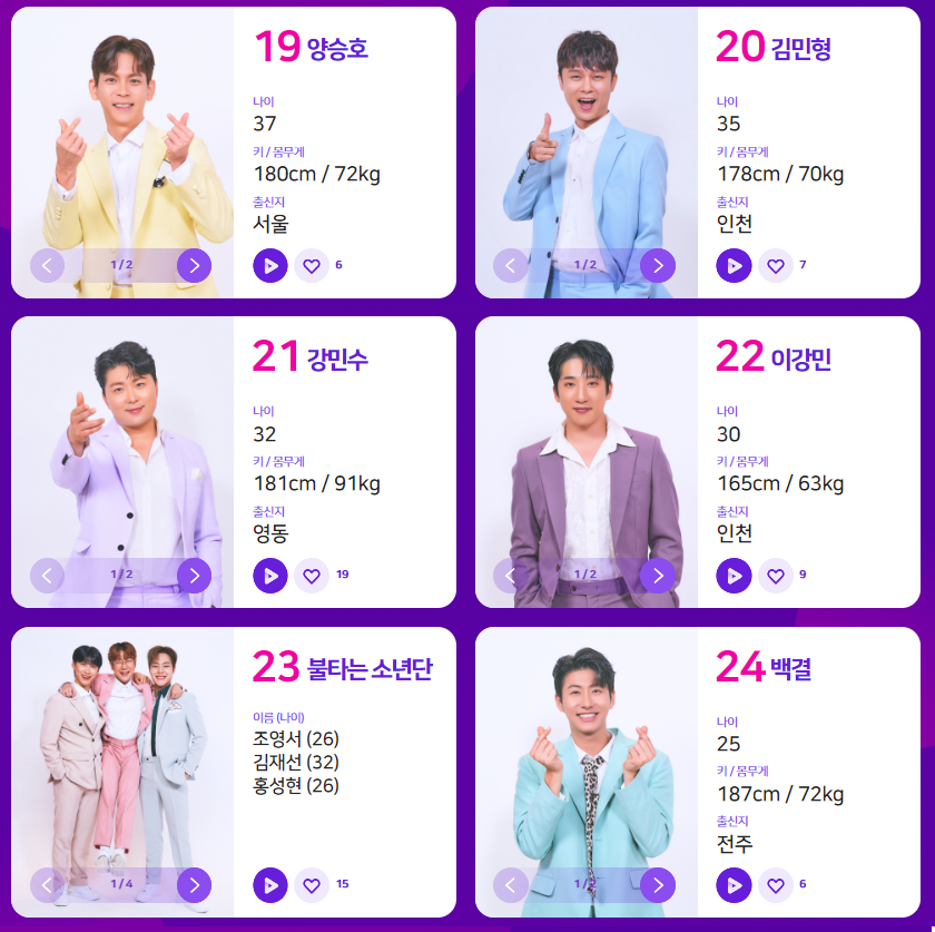 불타는 트롯맨 투표 방법은 아래 빨간색버튼 불타는 트롯맨 투표하기를 클릭해서 로그인 한다음에 투표하면 됩니다. 로그인은 네이버ID로 가능합니다. 지지하는 참가자를 찾아서 하트를 클릭하시면 투표가 완료 됩니다 .