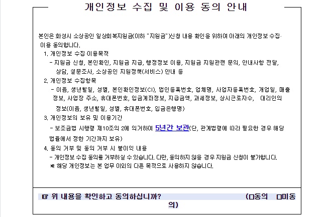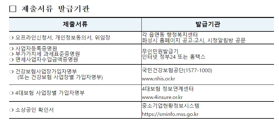 화성시 소상공인 일상회복지원금 신청서류