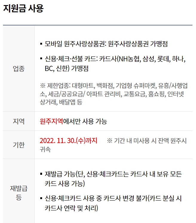 원주시 긴급재난지원금 사용방법