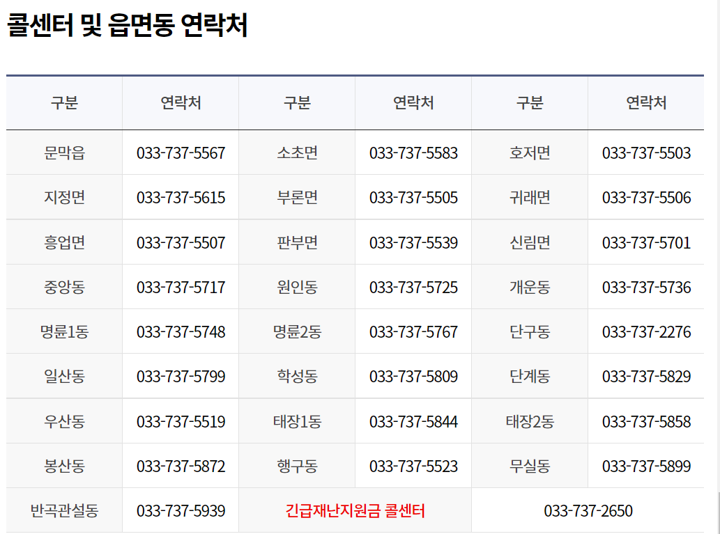 원주시 긴급재난지원금 콜센터